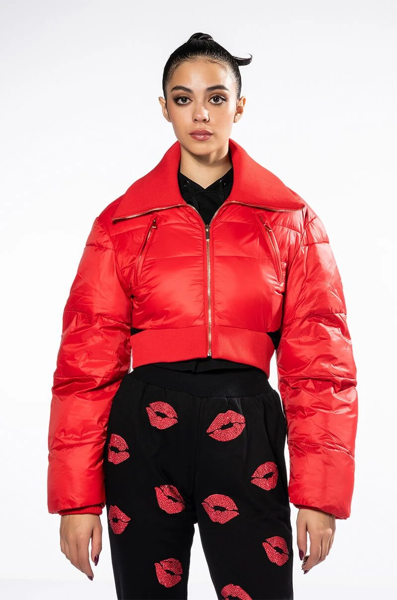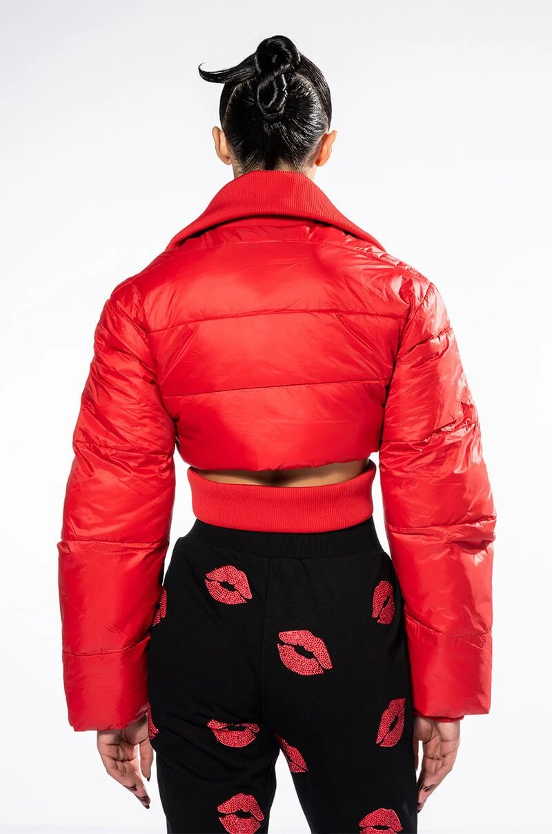 Put your cold weather looks in overdrive with The AKIRA Label All In Motion Crop Puffer. This sleek yet plush puffer piece features a cropped cut, long sleeves, a detached ribbed knit hemline, coordinating ribbed knit cuffs, a zip front design, a full zip flat lay collar, and a polyester lining. Pair with overalls, a turtleneck sweater, and ankle booties for a cute, complete look.