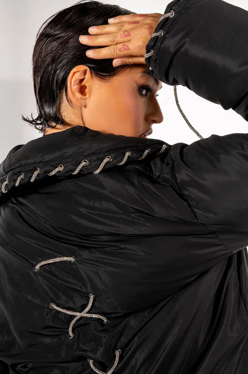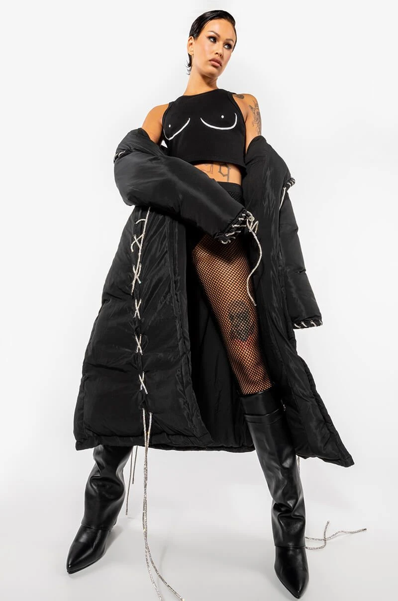 – Main Fabric: 100% Polyester Lining Fabric: 95% Polyester 5% Spandex