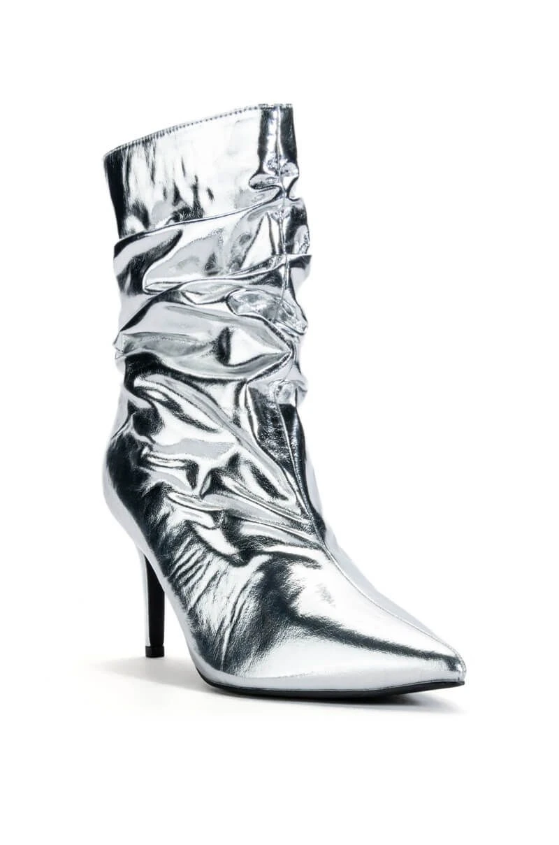 AZALEA WANG ARIELLA SLOUCH STILETTO BOOTIE IN SILVER