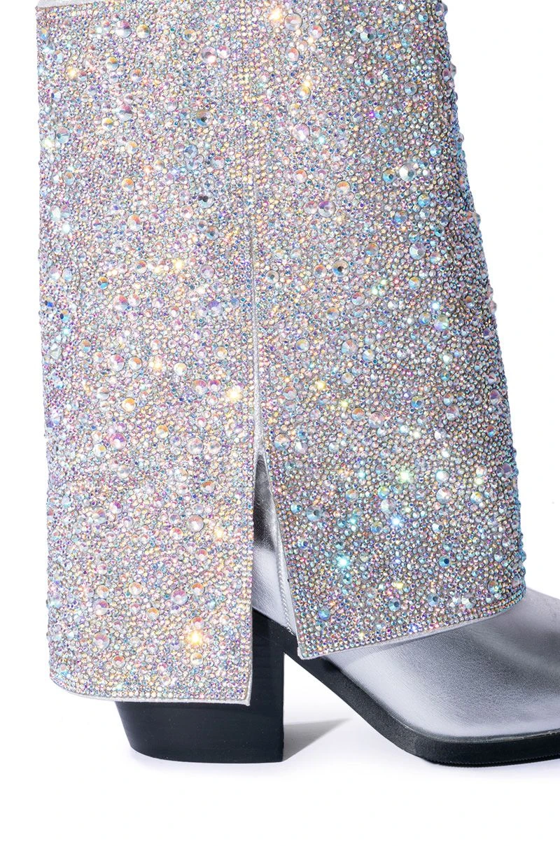 AZALEA WANG CRYSTALIZED RHINESTONE EMBELLISHED WESTERN BOOT IN SILVER
