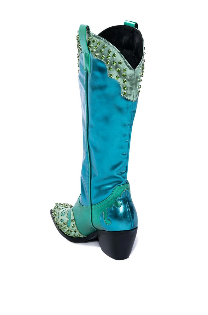 AZALEA WANG KNOX METALLIC WESTERN BOOT IN METALLIC BLUES