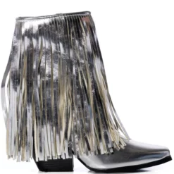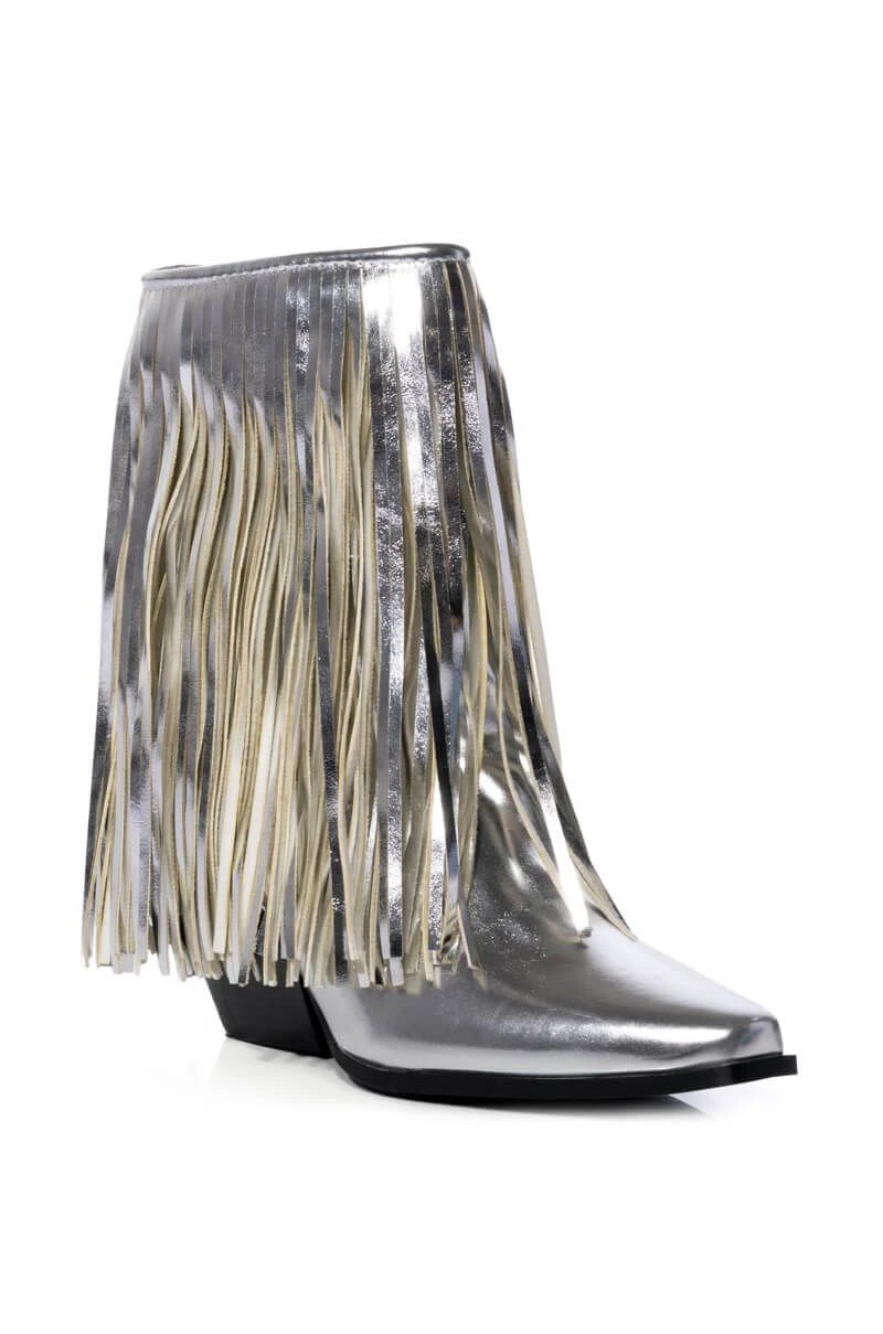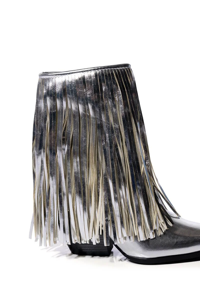 AZALEA WANG SCARLETT METALLIC CHUNKY WESTERN FRINGE BOOTIE IN SILVER