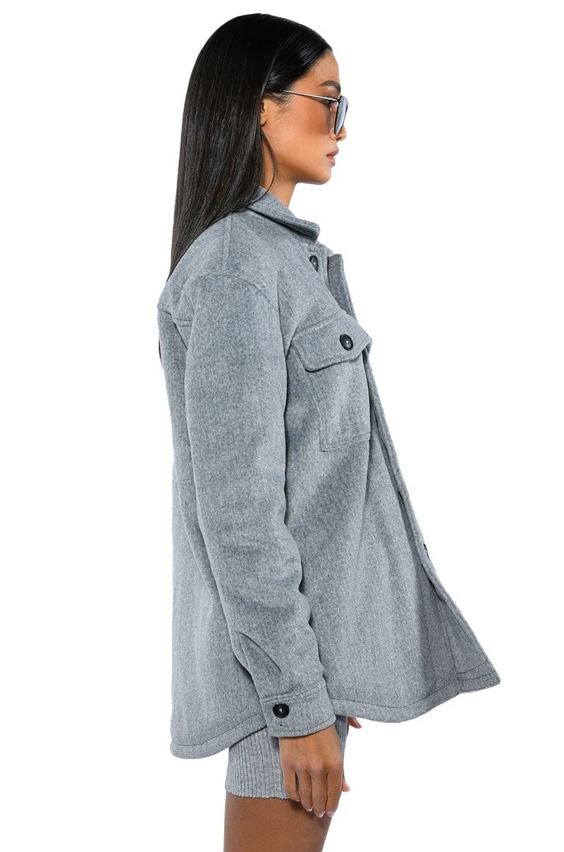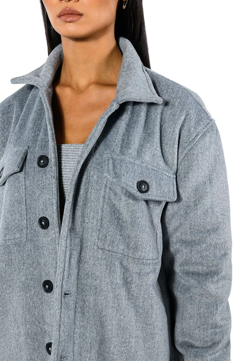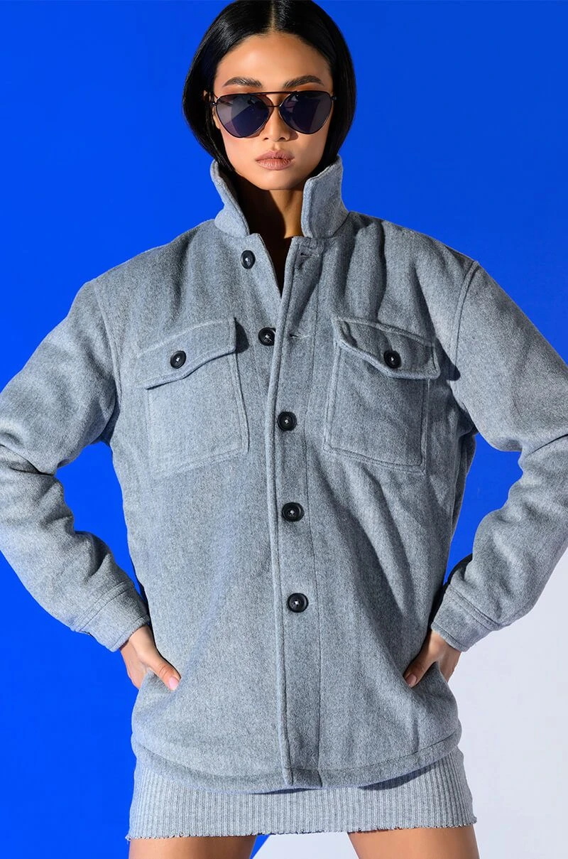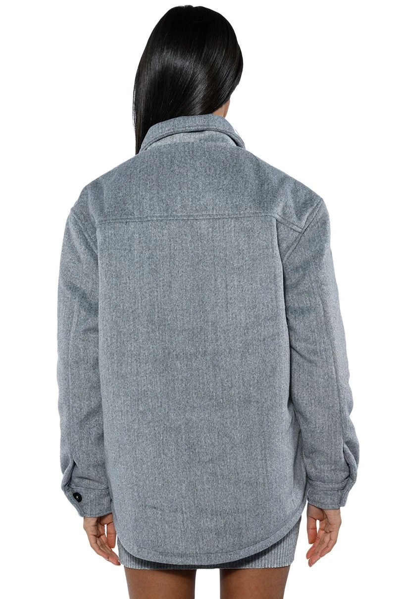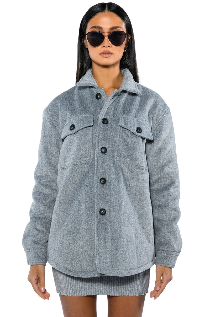 The AKIRA Label Comfy Classics Shacket With Quilted Lining is made from a fuzzy, wool-like fabrication and features a collared neckline, long sleeves with buttoned cuffs, buttoned flap chest pockets, quilted lining, and a button down front closure. Layer this piece over mock neck dresses and combat boots to complete your look.