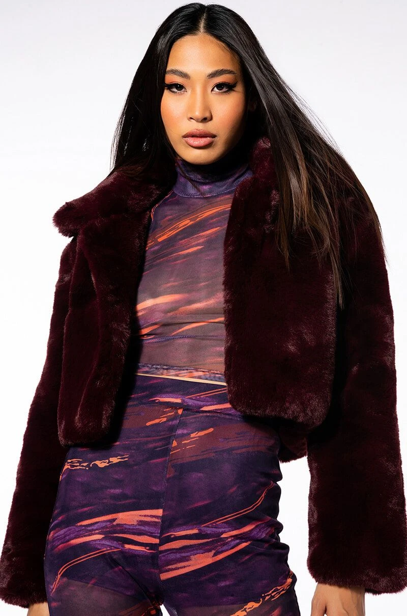 You’re the one we love. The AKIRA Label Mi Amor Plush Faux Fur Jacket is an ultra plush, faux fur-based jacket complete with long sleeves, a cropped hem, high collar, and a loop latch front fasten. Pair with your favorite turtleneck, denim and stiletto ankle booties to add an ultra glam finish to your look.
