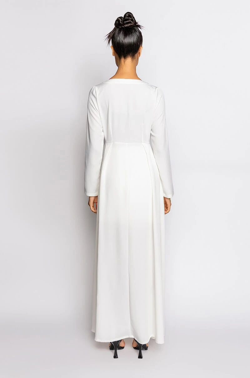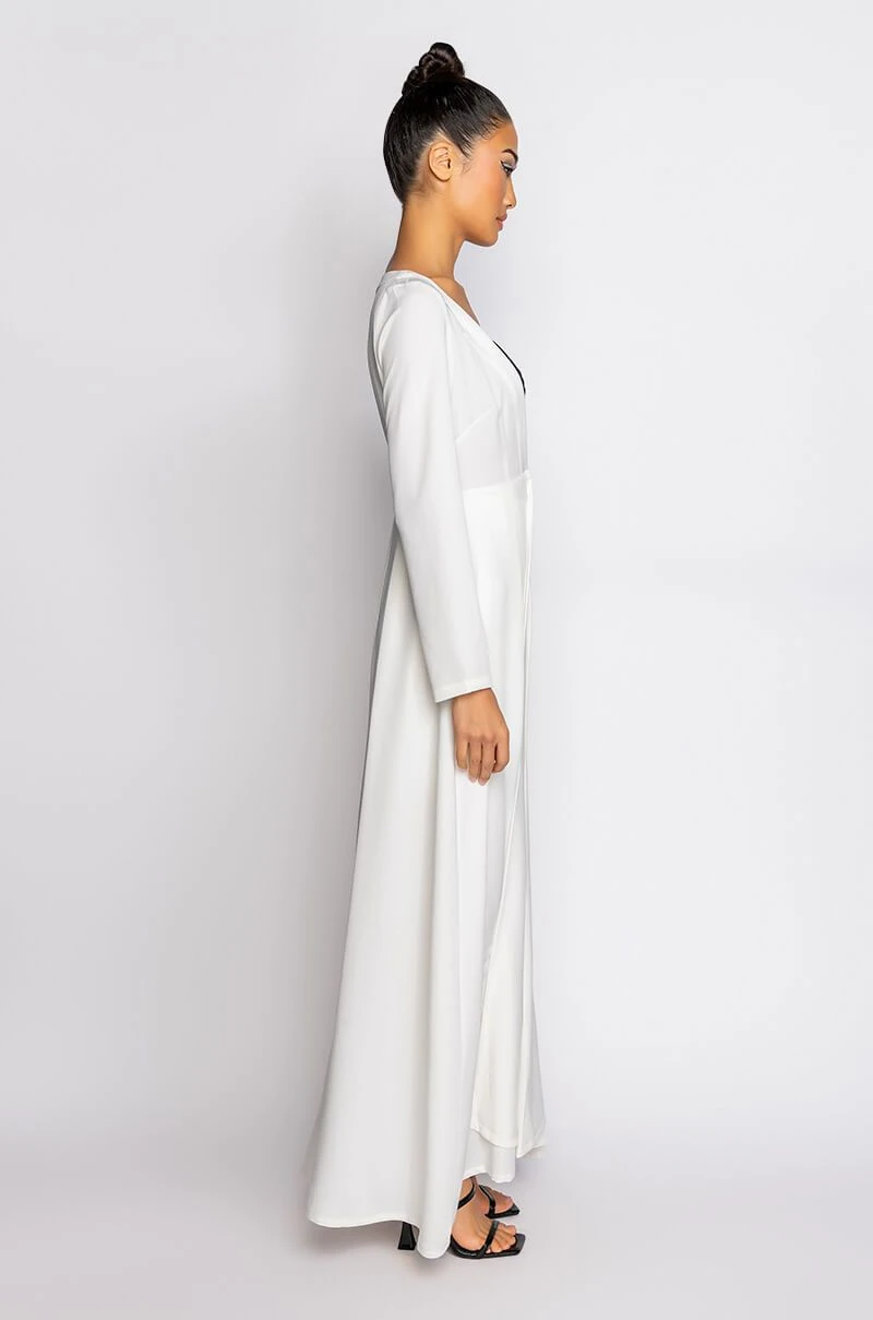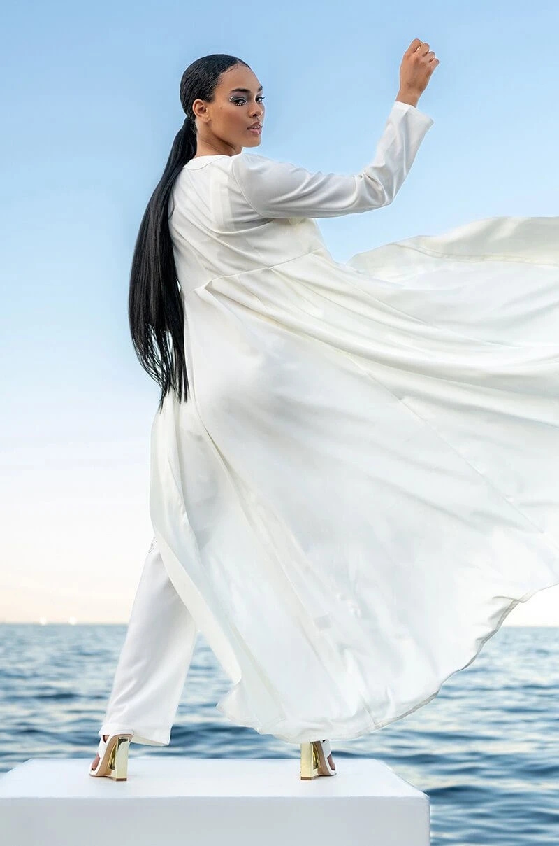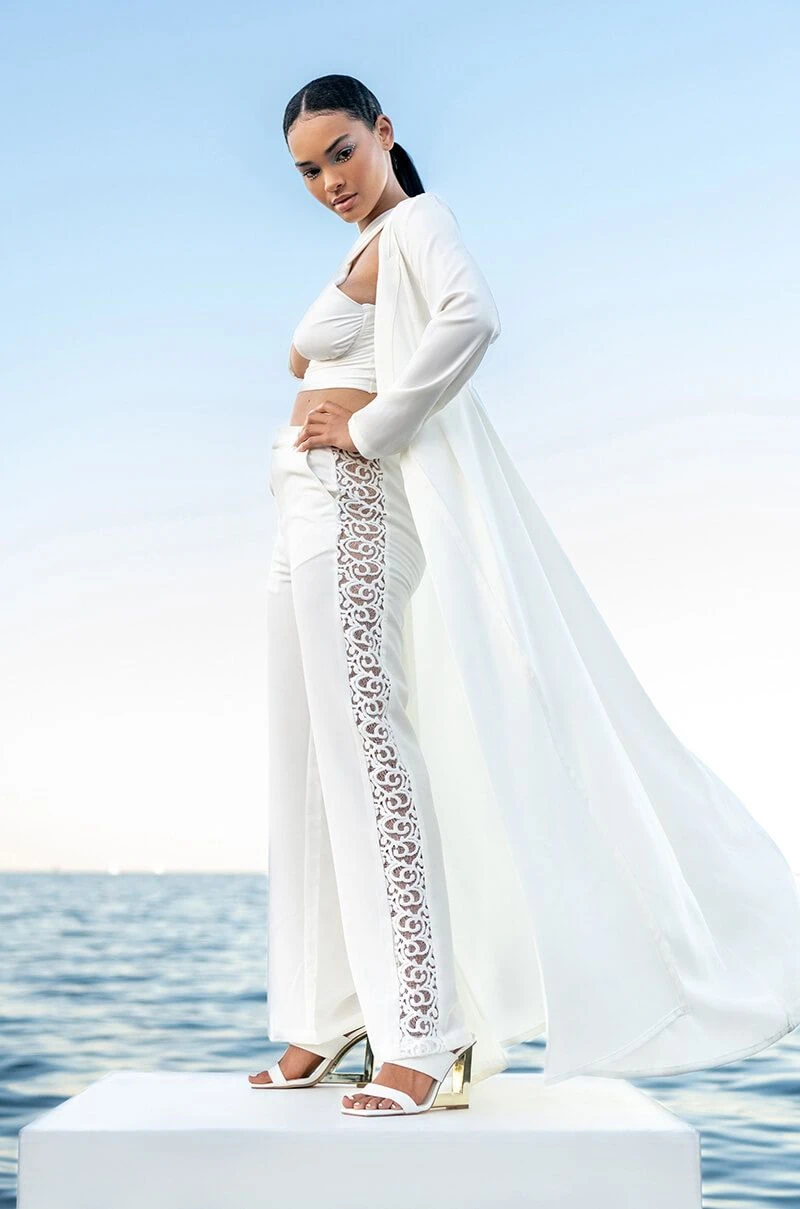 Cross this world in style with The AKIRA Label Moon River Long Sleeve Trench Blazer. This chic layering piece is made from a soft, lightweight fabrication and features a plunging neckline with notched collar stitch detailing, long sleeves, a longline silhouette, a cascading front detail, and a single gold metal hook and eye closure at the waist.