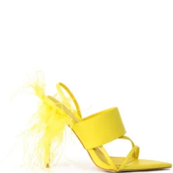 AZALEA WANG CHICK FEATHER DECOR POINTED TOE SANDAL IN YELLOW