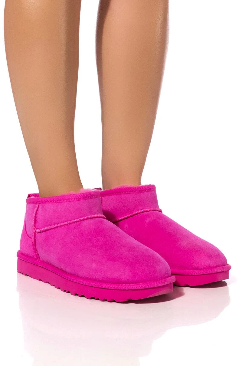 The UGG Classic Ultra Mini is the ultimate cold weather bootie! This mini version of an UGG classic is made from a sheepskin upper and features a pull-on fit, a rounded toe silhouette, an asymmetrical ankle-height shaft, fuzzy wool lining, embroidered seam detailing, a back pull tab, and an UGG logo embroidered at the back.